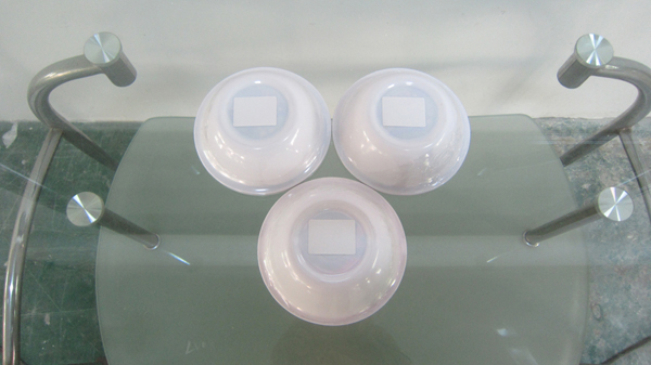 對塑料碗進行底部貼標的樣品圖片。