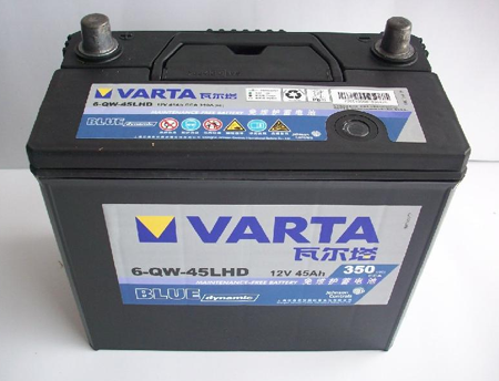 汽車電池都是很大的。一般都是貼兩面的。上平面及正面。下面再來一張汽車電池的貼標樣品圖片。也是上平面及正面。